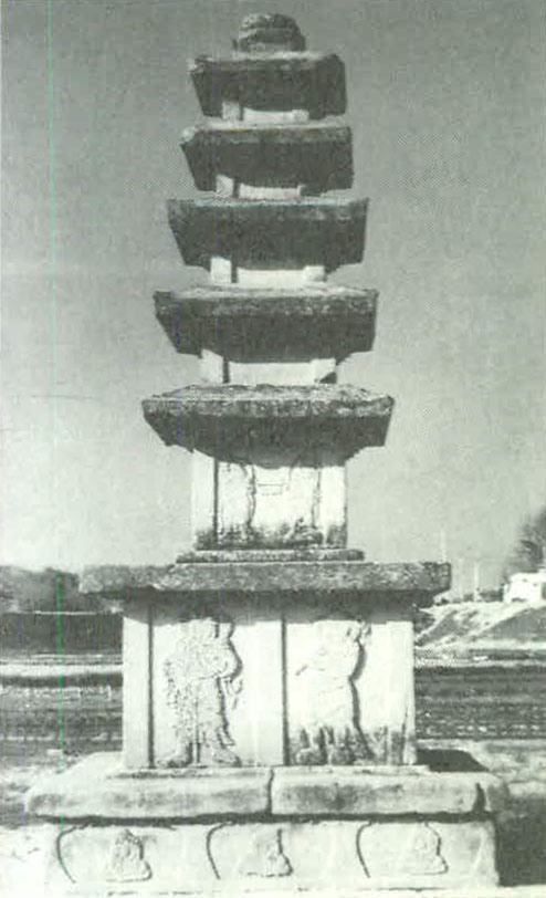 신라의 옛 땅인 경상도지방을 중심으로 한 지역에서는 어느 정도 신라 석탑계를 충실하게 계승하면서도 세부적으로는 변형을 보이고 있다. 곧 예천 읍내의 개심사지 5층석탑(보물 제53호;현종 원년, 1010<사진 1>)은 연화문이 조식된 판석 1매를 끼워 탑신 괴임대를 삼고 있다. 漆谷郡 若木面 福星洞寺址에서 1924년에 서울 경복궁내로 옮겨 세운 정도사지 5층석탑(보물 제357호;현종 22년)은 하층기단 면석의 각 면에 3구씩의 안상이 있고 그 내면에 地線으로부터 귀꽃문이 조식되어 있어 주목된다.