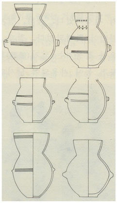 토기도 민무늬 토기 이외에 검은 간 토기와 입술 단면에 원형 또는 타원형의 덧띠가 붙여진 덧띠 토기 및 붉은 간 토기가 나타나고 있다.
